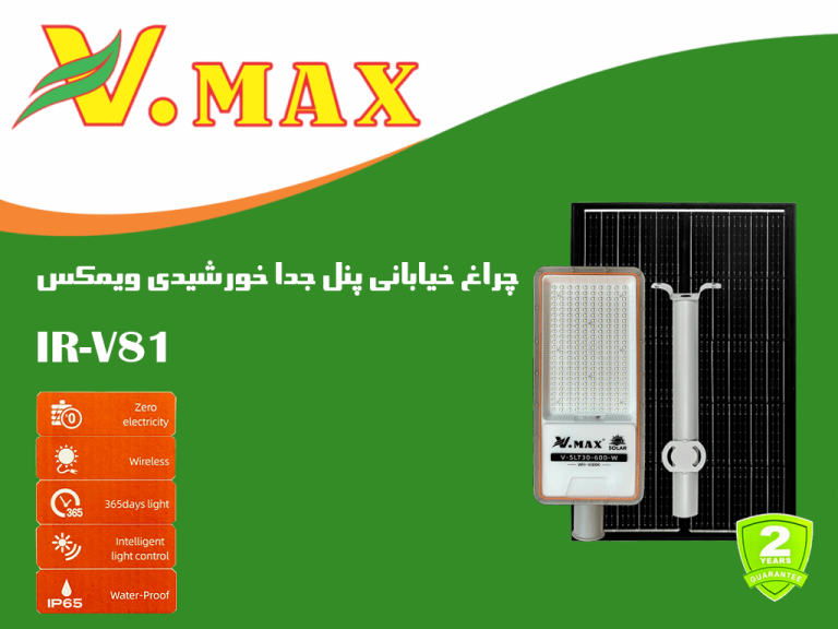چراغ خیابانی پنل جدا خورشیدی ویمکسIR-V81600- مقاوم در برابر بارندگی و گرد و خاک (IP65)